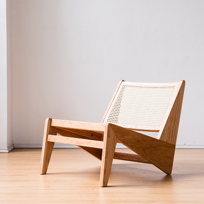 北欧实木沙发椅单人藤编昌迪加尔椅#372